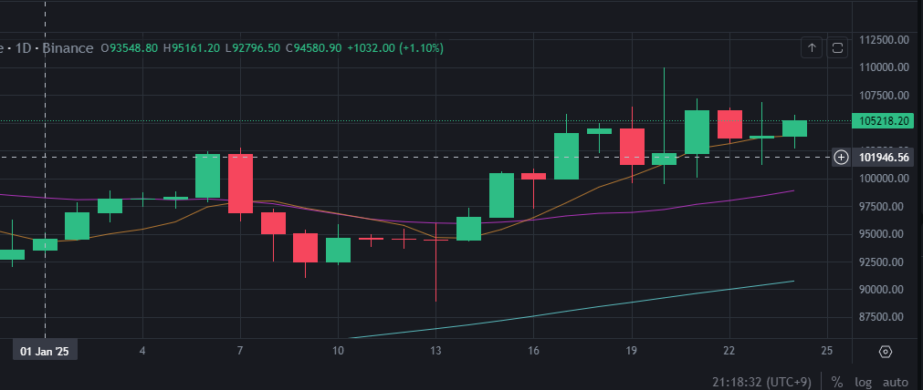 2025년 현재, 비트코인(BTC)의 가격은 약 105,218달러로 거래되고 있습니다. 이는 2024년 4월에 있었던 네 번째 비트코인 반감기와 도널드 트럼프 대통령의 재선에 따른 친암호화폐 정책이 주요한 가격 상승 요인으로 작용했기 때문입니다. 역사적으로 비트코인의 반감기는 공급 감소를 통해 가격 상승을 유도하는 경향이 있었으며, 이번 반감기 역시 이러한 패턴을 따랐습니다.